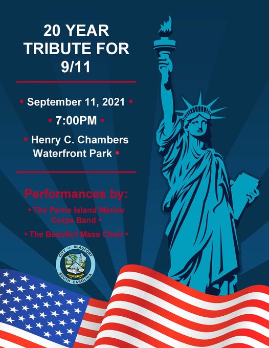 The ceremony, which will begin at 7 p.m., will be held at downtown Beaufort’s Henry C. Chambers Waterfront Park. It will pay tribute to those who lost their lives in the attacks, and to the heroes who saved the lives of so many people.