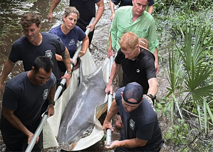 Rescue 335 responded shortly after 4:00 p.m., deploying firefighters specially trained in technical water rescue as part of South Carolina Regional Response Team 4. Working alongside the LMMN team and residents Michael Smith and Thomas Layer, crews attempted to corral the dolphin using a specially designed marine rescue tarp with stabilizing poles. Although Lucky initially swam farther into the lagoon, the team regrouped and eventually guided her safely onto the tarp.