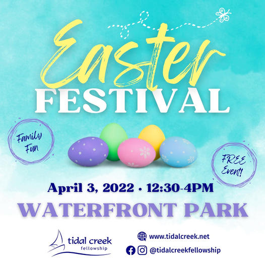 The, on Sunday, April 3rd you can venture into downtown Beaufort and enjoy the annual Easter Festival with the folks from Tidal Creek Fellowship at Henry C. Chambers Waterfront Park. It’s a free event with tons of good stuff including an inflatable obstacle course, face painting, arts and crafts, a toddler bouncy area, snow cones, cookie decorating, a hair coloring station, Easter basket giveaways, popcorn and lots more.