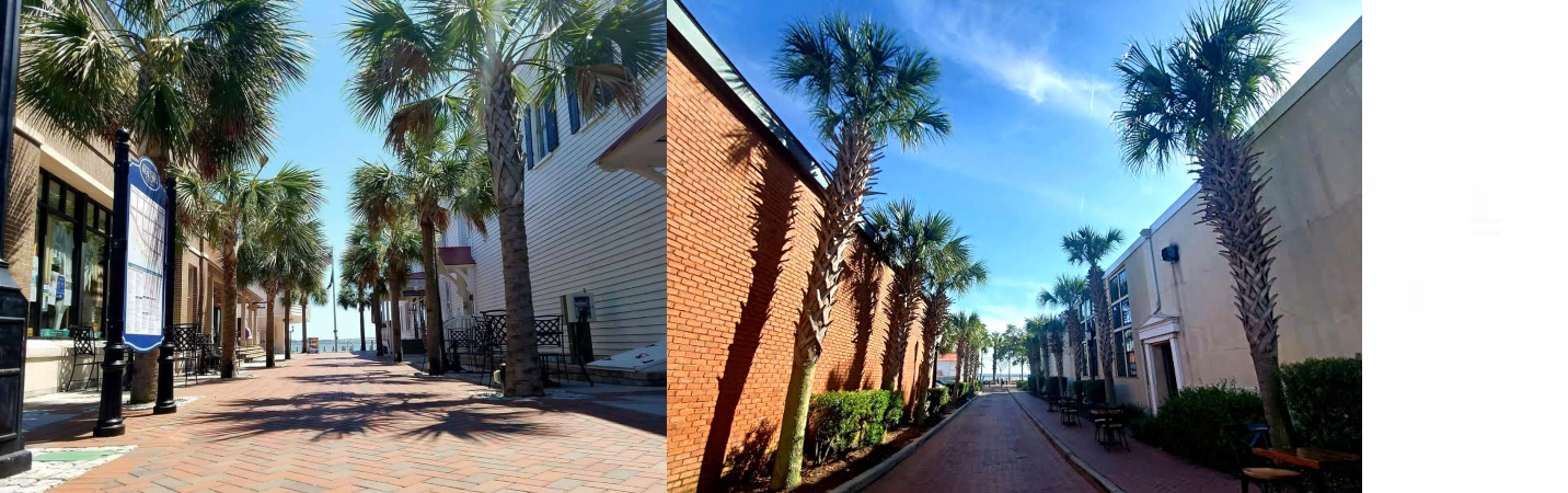 In downtown Beaufort just off of Bay Street you’ll find two alley ways lined with palmetto trees. Both, presumably, were designed and planted to lead you to the picturesque downtown Beaufort waterfront and Henry C. Chambers Waterfront Park. One is located opposite of Scott Street near the eastern end, and the other is located opposite of West Street, called West Street Extension.