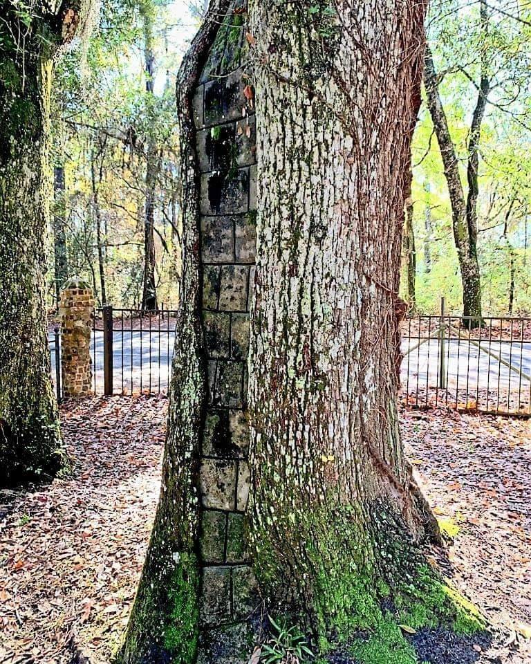 You’ll occasionally see a hollowed out tree that has been filled with bricks or concrete, like this one on the grounds of the Old Sheldon Church ruins. Folks think that the tree grew around the bricks, but it was a practice in the old days to fill big holes in trees with bricks or concrete to help support the tree. This was all done by hand, and is not practiced any longer.