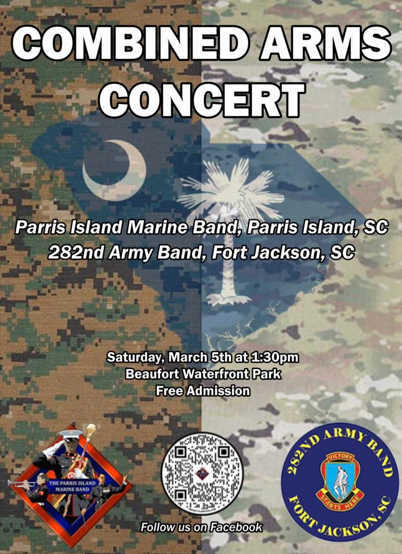 The Parris Island Marine Band is hosting a free Combined Arms concert with the 282nd US Army Band next month at downtown’s Henry C. Chambers Waterfront Park.