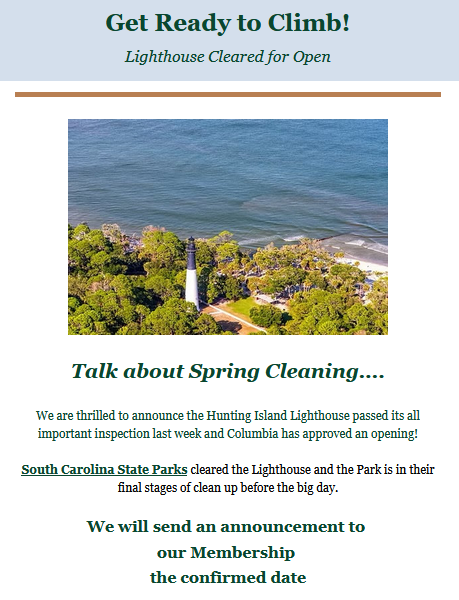 “We are thrilled to announce the Hunting Island Lighthouse passed its all important inspection last week and Columbia has approved an opening,” FOHI said.
