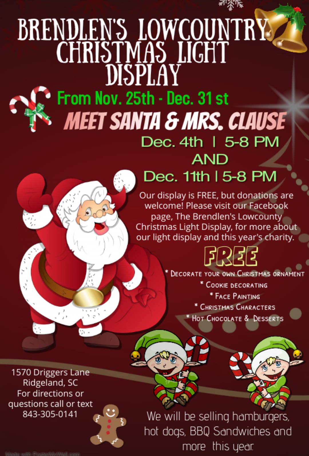 For those interested in donating but are not able to visit, you can visit them on Facebook at Brendlens’ Lowcountry Christmas Light Display. Or you can contact Chelsea Brendlen at 843-305-0141.