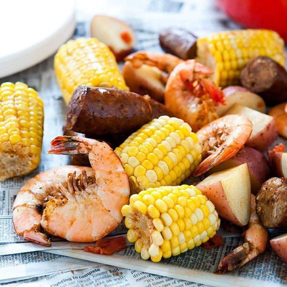 Nothing is more perfect for a Lowcountry meal than Frogmore Stew, a mouthwatering, one-pot meal of shrimp, corn on the cob, new potatoes and smoked sausage.Those four ingredients are the basics, but sometimes live blue crab or stone crab claws are added, as well as onion. Seasonings usually include seafood seasoning of your choice, beer and hot sauce.
