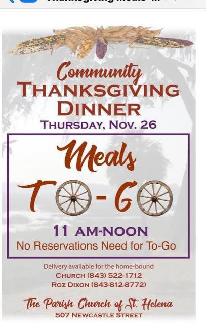 On Thanksgiving Day, the Parish Church of St. Helena will host the 41st Annual Community Thanksgiving Dinner on Thursday, November 26th, from 11am Noon at the church’s Parish Hall at 507 Newcastle Street in Downtown Beaufort.