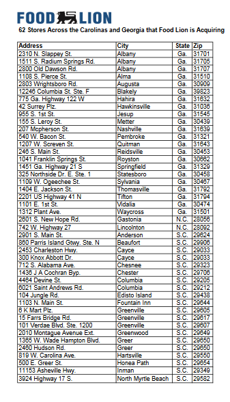 Last June, Food Lion announced the largest acquisition in its history: the purchase of 62 BI-LO and Harveys Supermarket stores across South Carolina, North Carolina and Georgia, including the location in Port Royal.